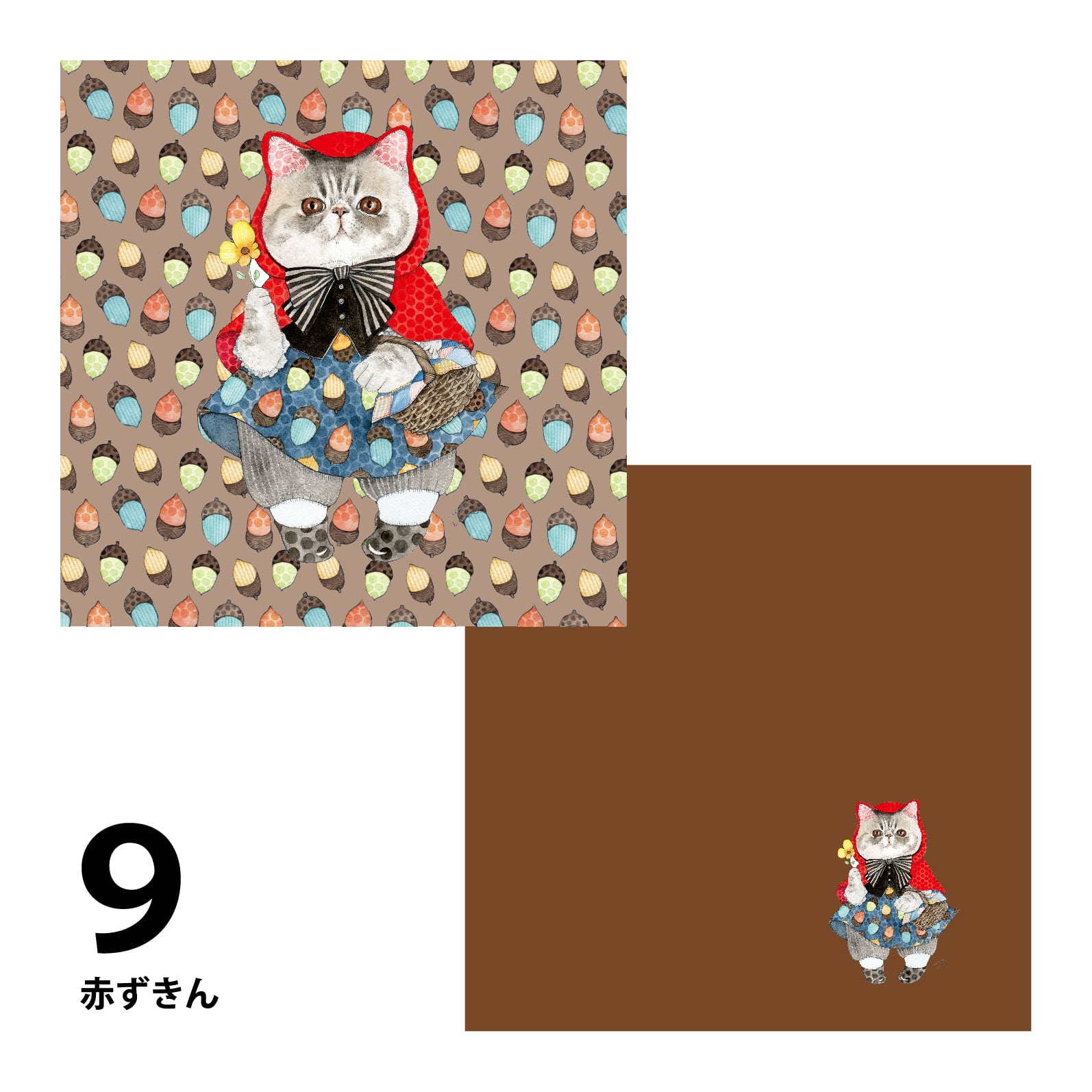 大きなねこちゃんとそれぞれのイメージに合わせた柄がかわいい
