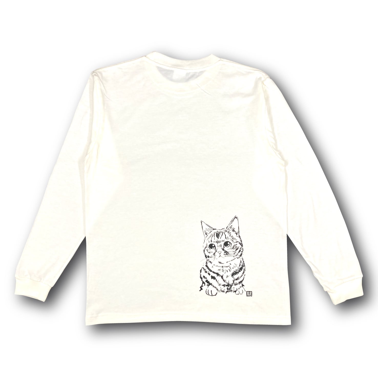 鬼辰カケル 長袖Tシャツ アイボリー 墨絵ニャンコ