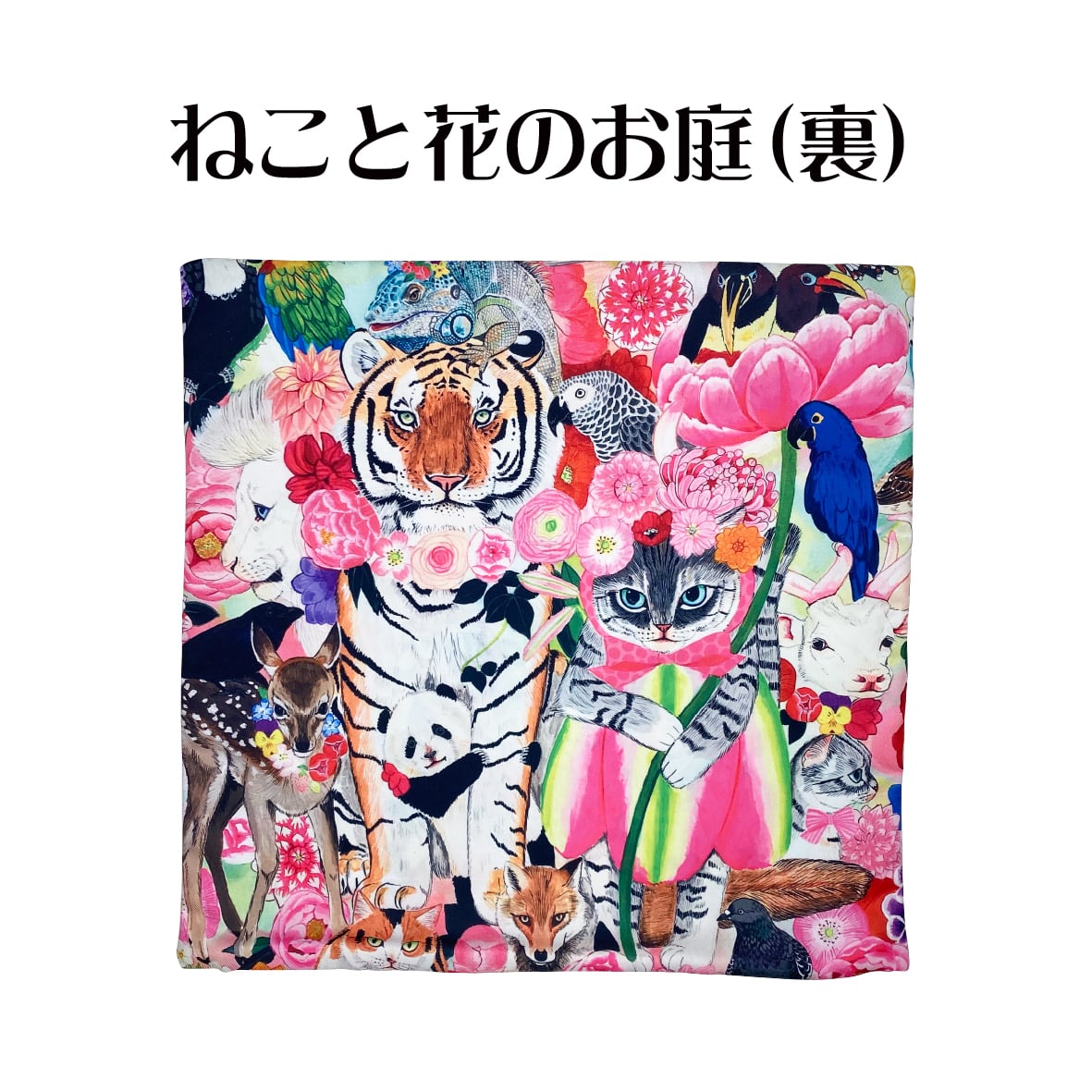 可愛らしい猫と花柄がデザインされた、両面柄違いのカバーは、インテリアに華やかさをプラスしてくれます。猫と花の組み合わせは、癒しや幸せを感じさせるとも言われています。あなたのお部屋に取り入れて、日々の癒しをお楽しみください。