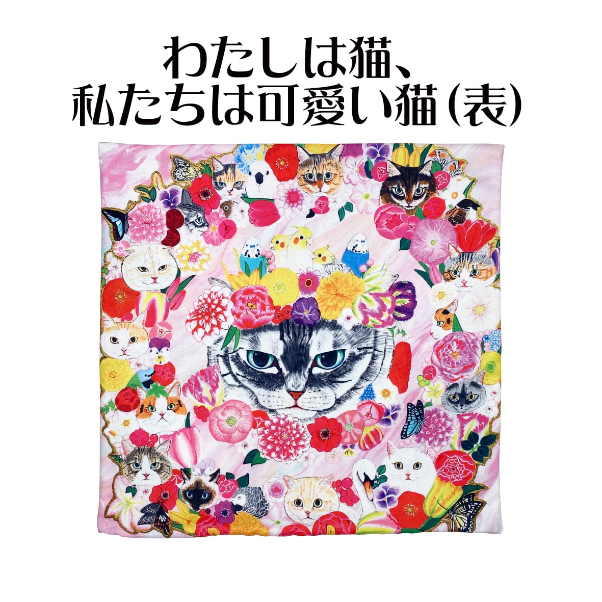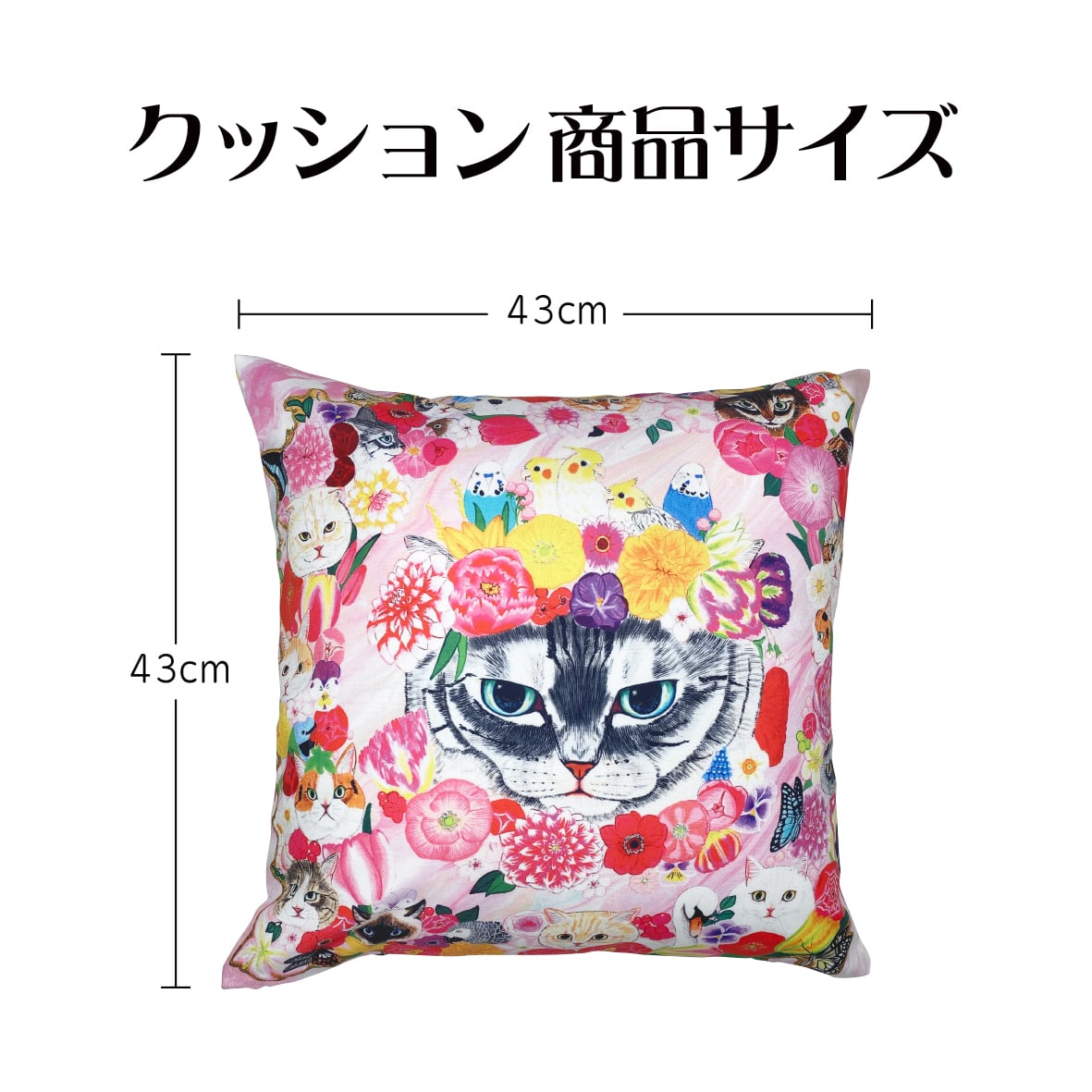 金田花季 クッションカバー わたしは猫、私たちは可愛い猫/ねこと花のお庭